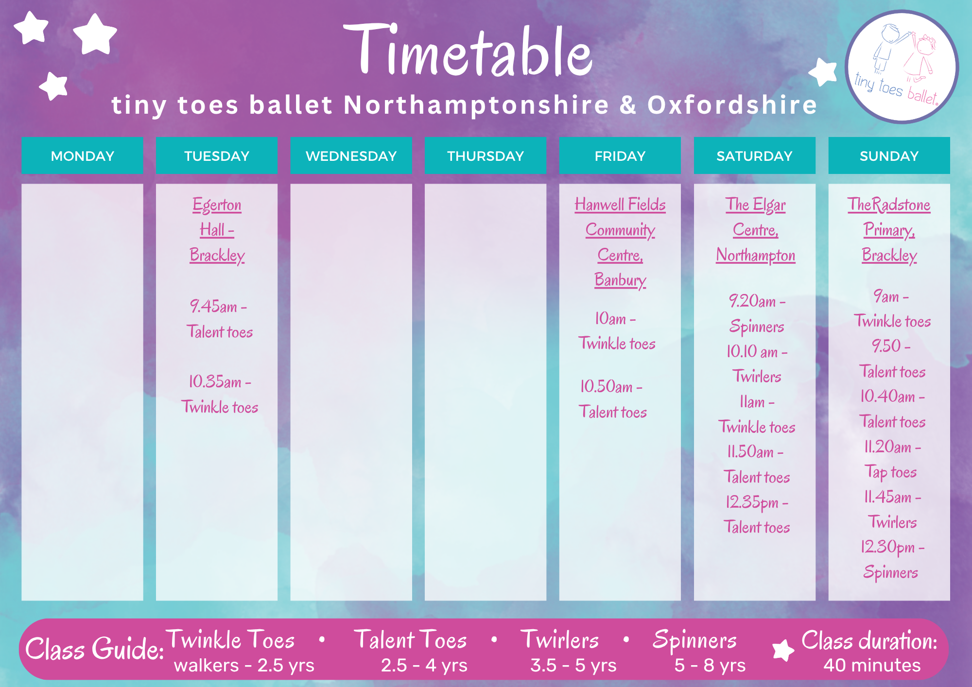 Tiny toes ballet Brackley & Northampton offers fun inclusive toddler & kids ballet classes that nurture confidence and promote development. Book a two week trial!